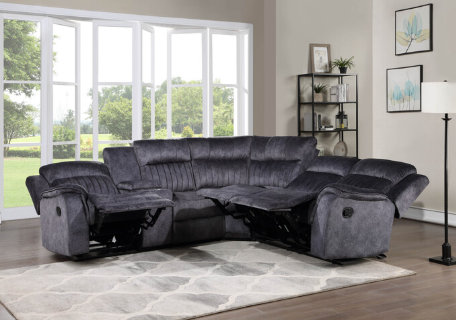 Dark gray faux suede modular sectional sofa w/ power recliner